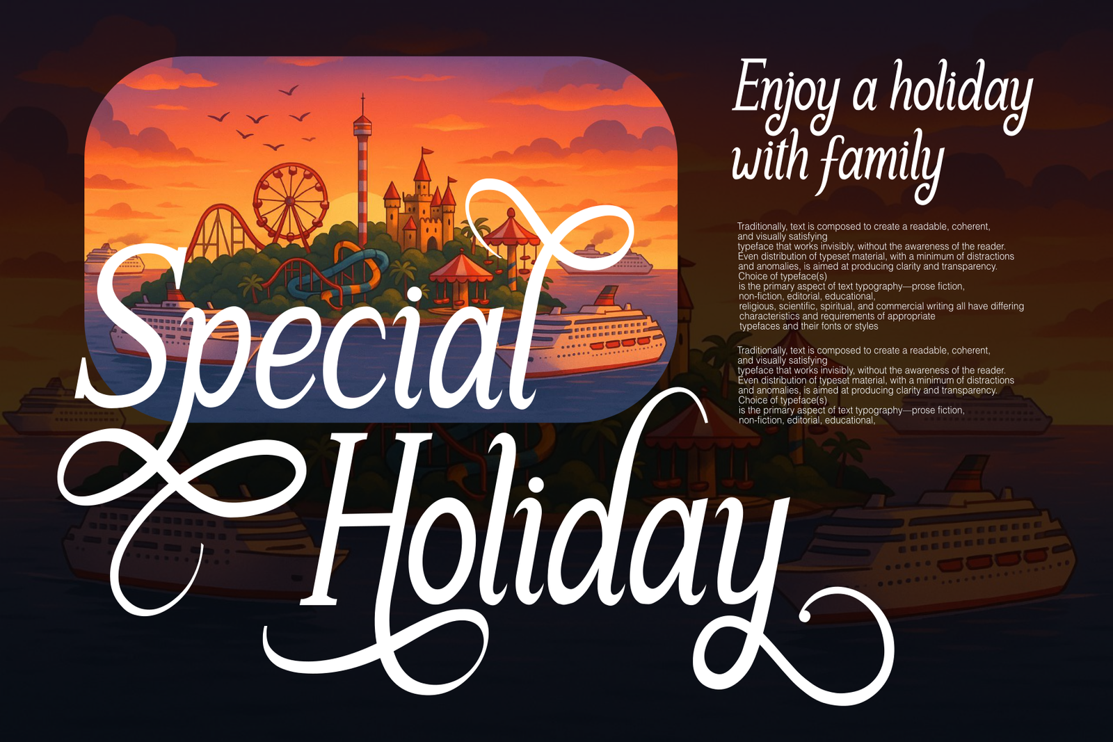Serif is a blend of serif and calligraphic swash fonts.